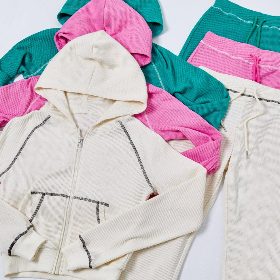 Women Waffle Knit Outfits Tracksuits Jogger 2 Pieces Set Cotton Hoodie Sweatpants Sweatsuits Women Lounge Set