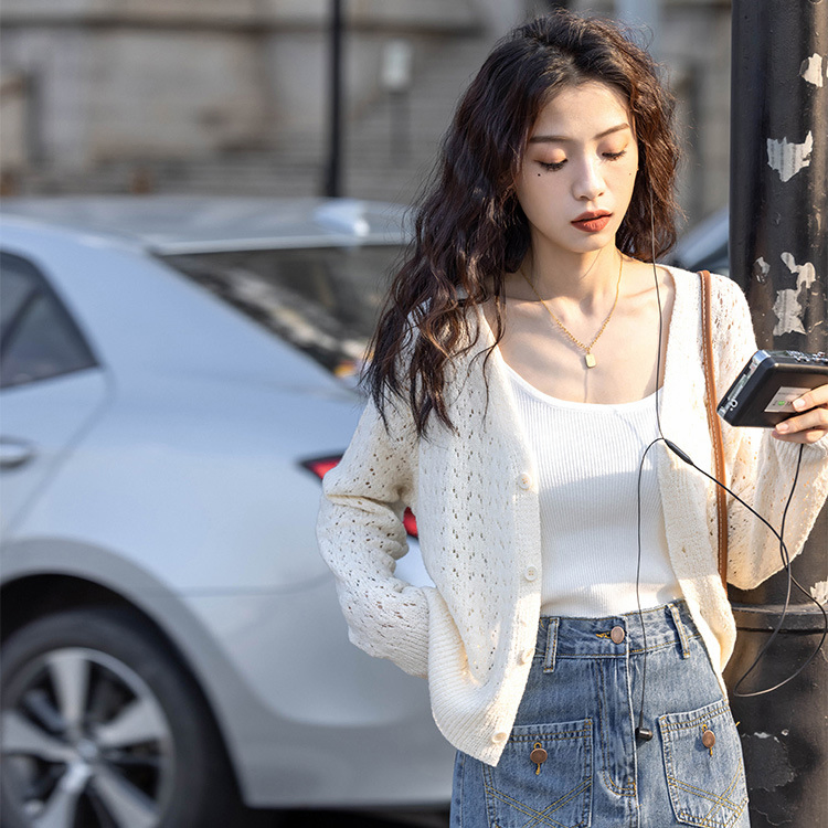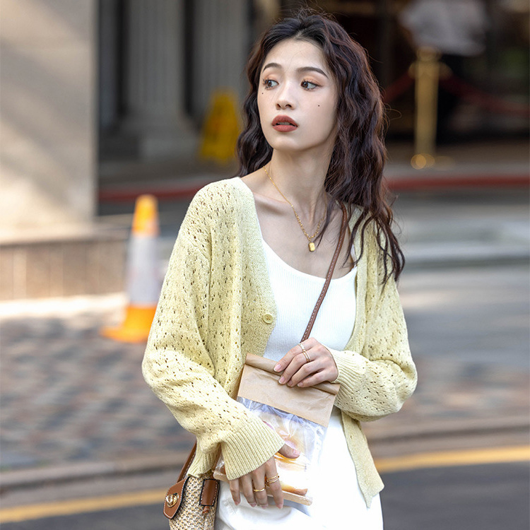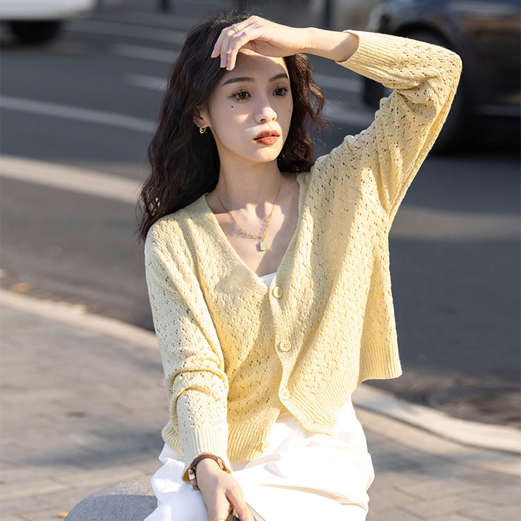 Knitwear Manufacturers Custom Fashion Long Sleeve Women Crochet Hollow Cardigan