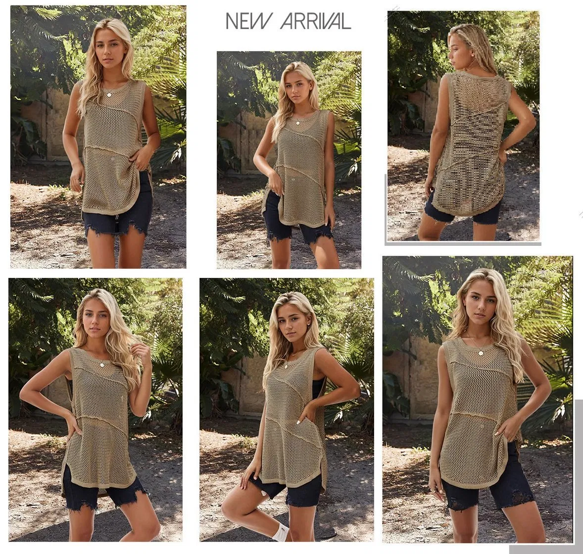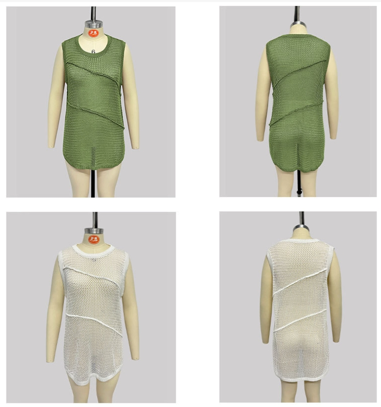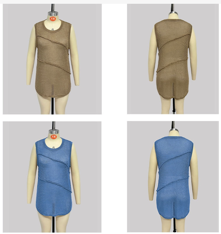 Summer Fashion Women′s Crew Neck Sleeveless Hollow Knitwear Casual Sexy Knit Vest