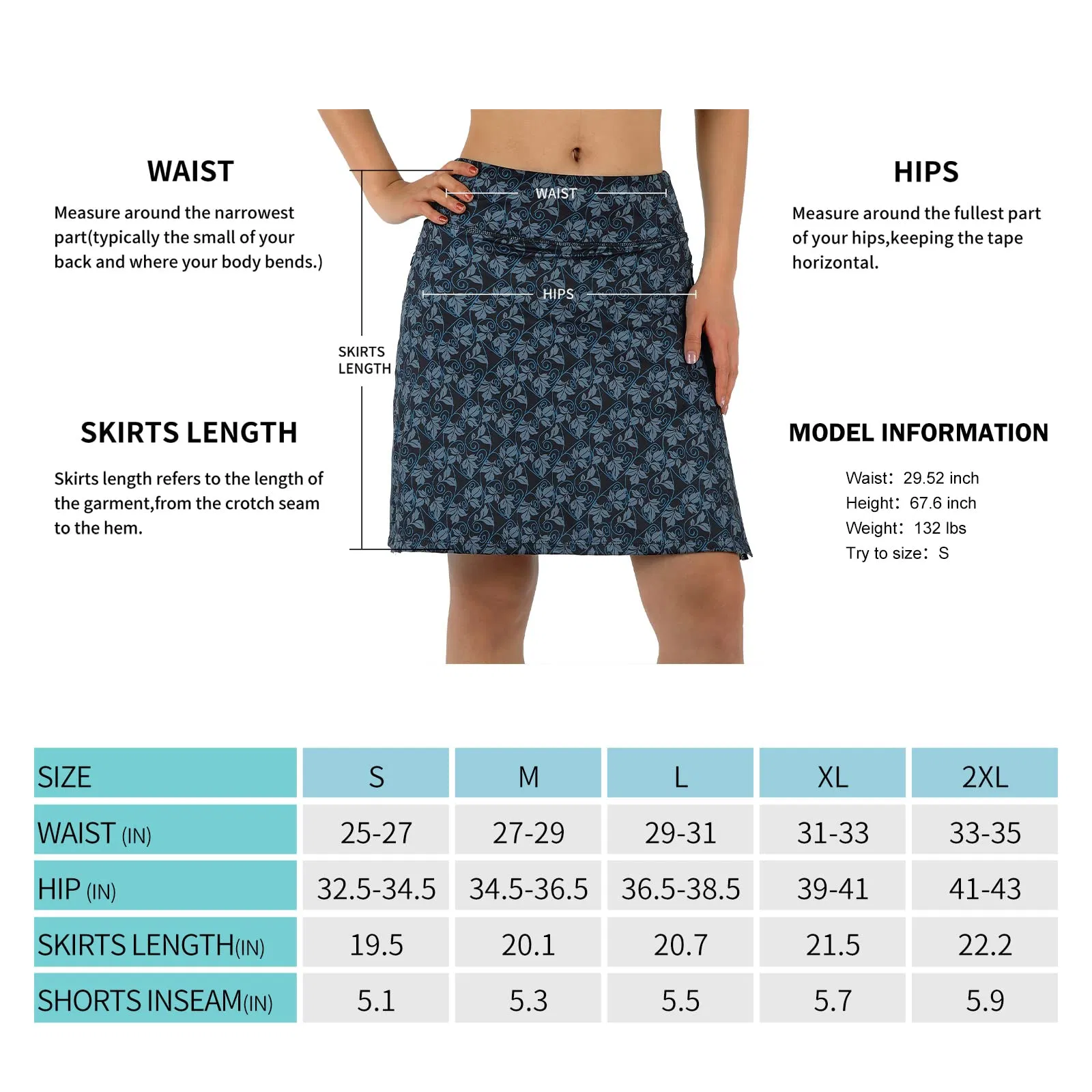 Tennis Golf Short Skirt Knee Length with High Waist Zipper Pocket