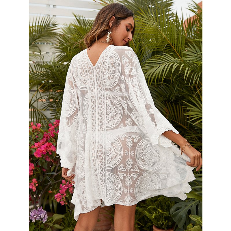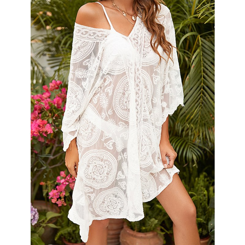 Wholesale See Through Polyester Sunscreen Smock Sexy Lace Pullover Beachwear