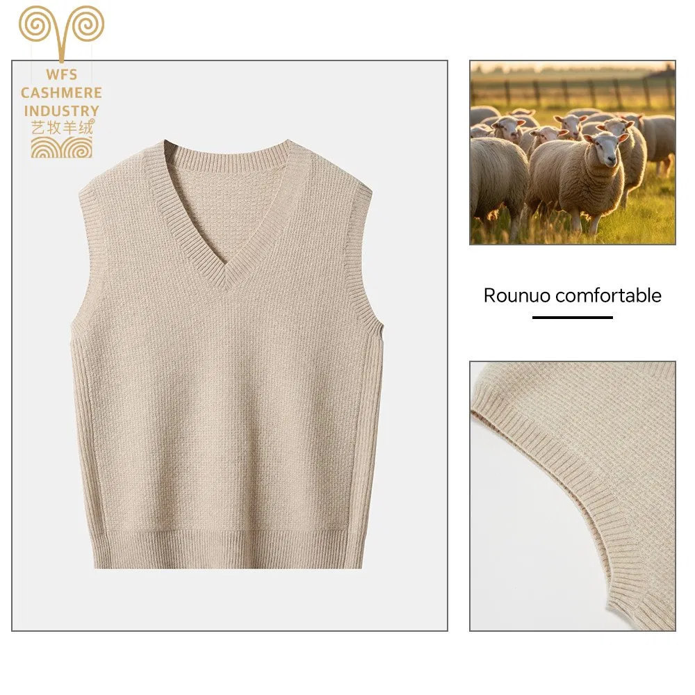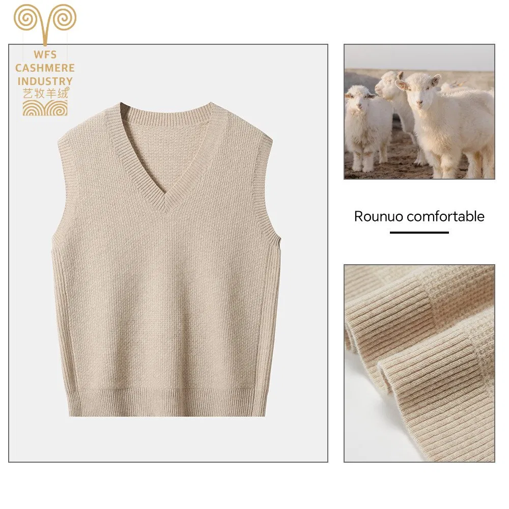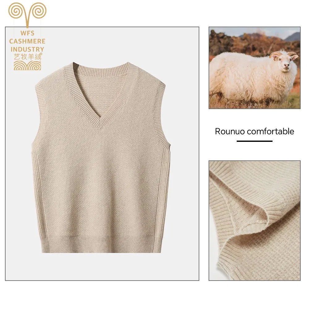 Fashion Sleeveless Warm Fleece Cashmere Vest for Women High Quality Casual Wool Vest V-Neck Cashmere Vest