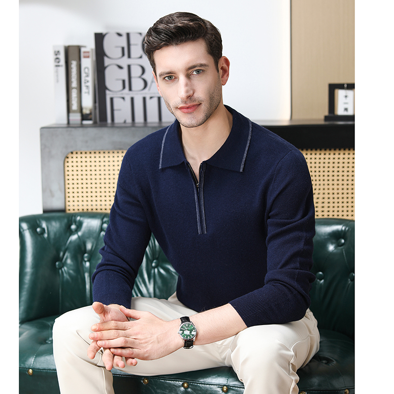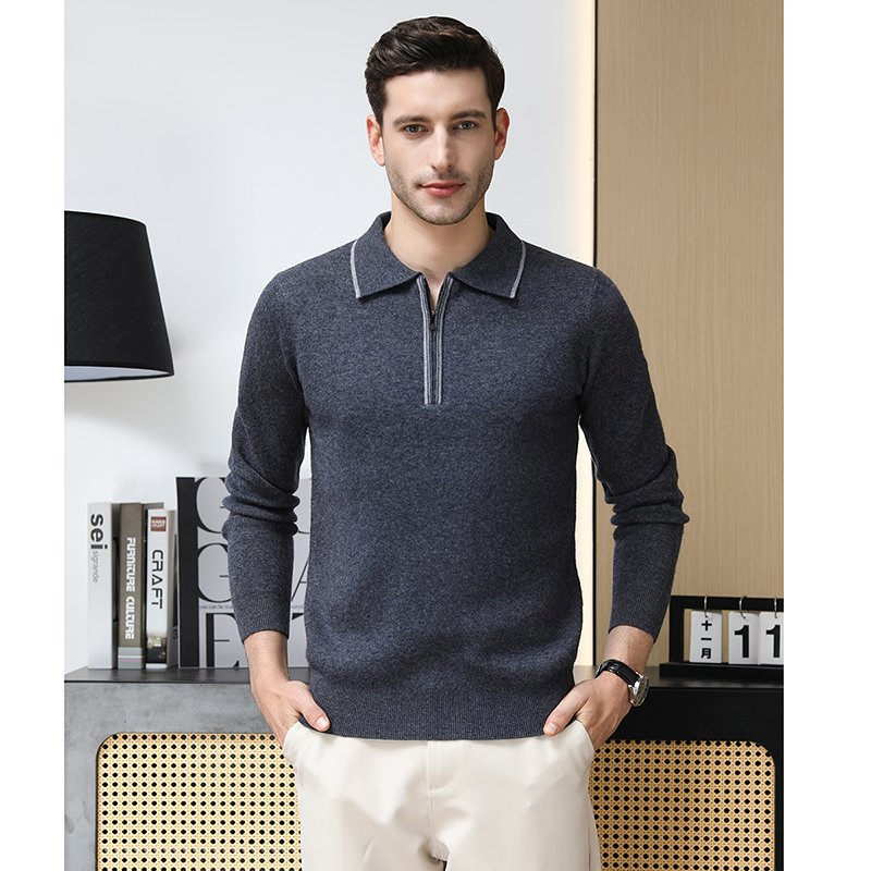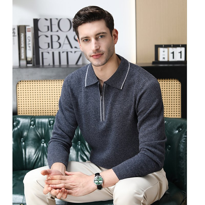 Men′s 100% Wool Half-Zip Cardigan - Long Sleeve Thermal Winter Knitwear, Casual & Business Pullover for Layering & Outdoor