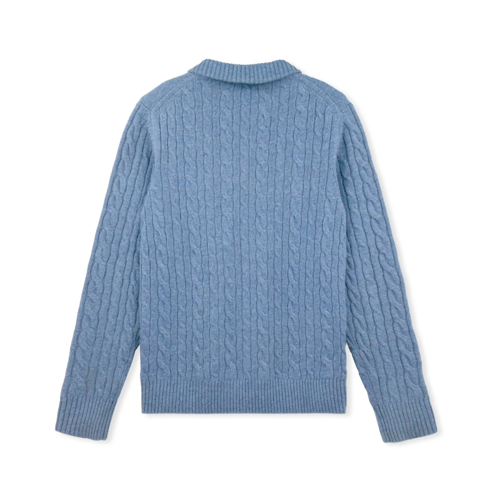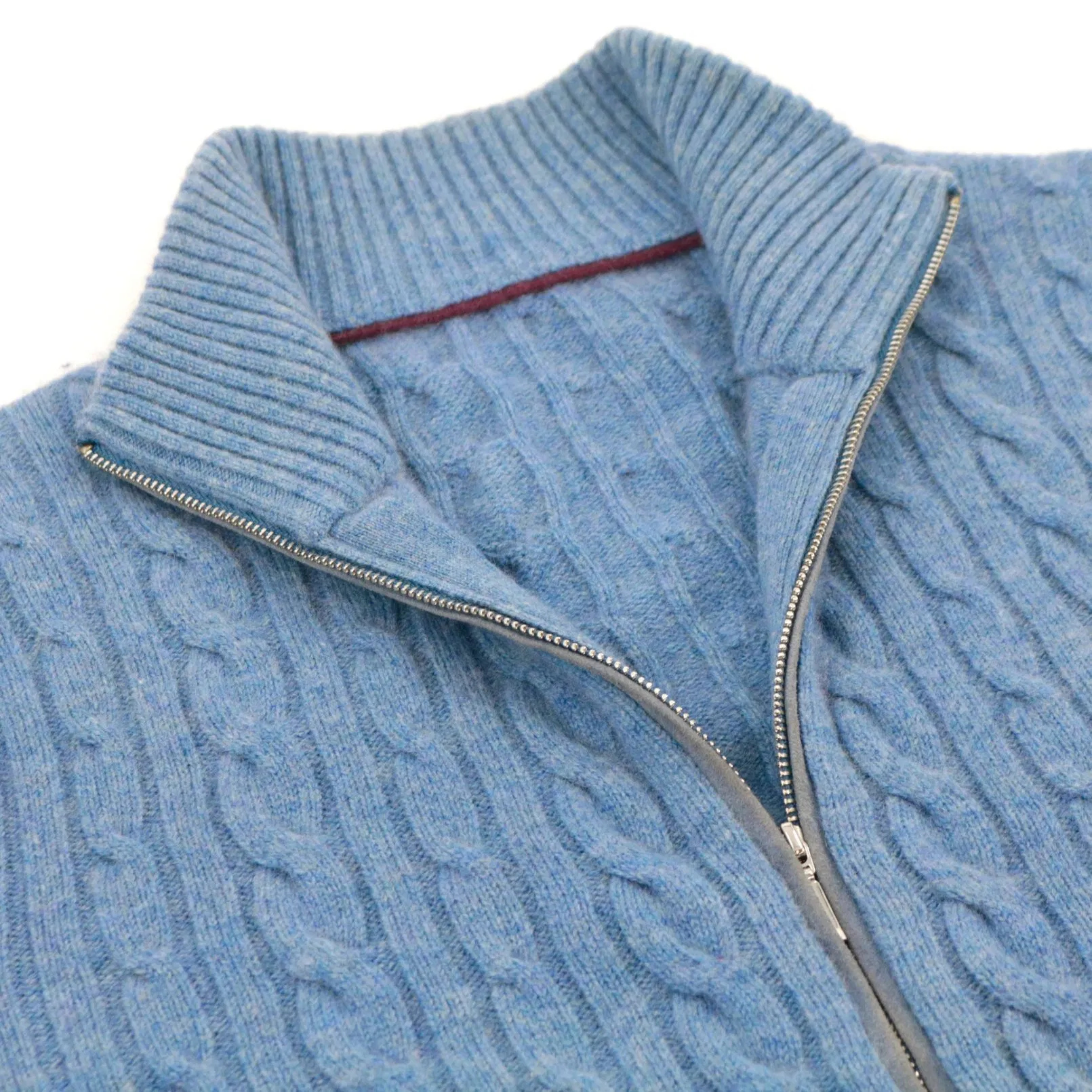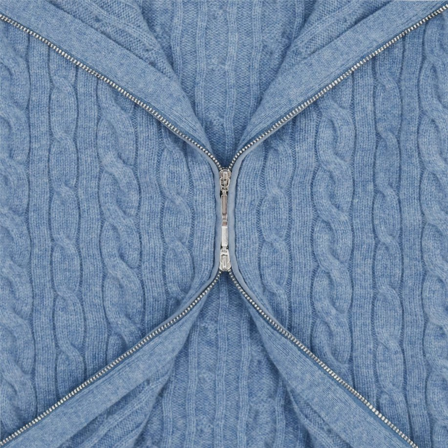 Winter Custom Ladies Women Knit Sweater Blue Long Sleeves Zip Cardigan Knitwear