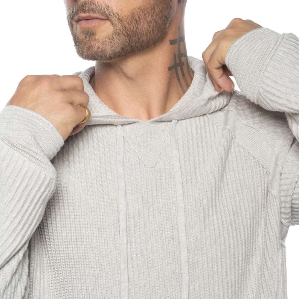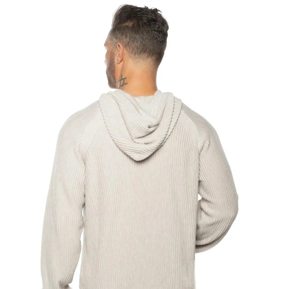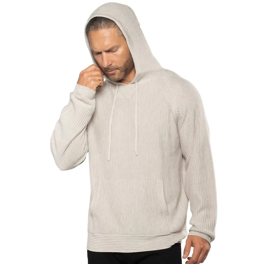 Trendy Beige Knit Hoodie for Men - Perfect for Casual Wear