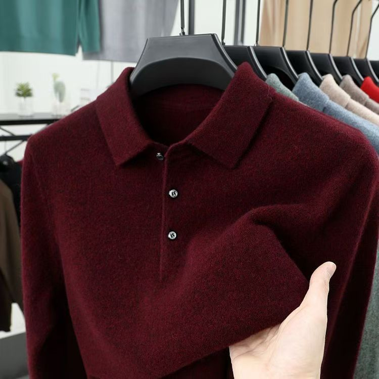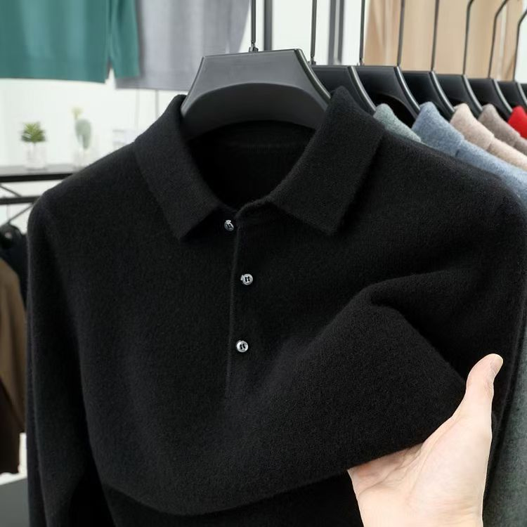 Men′s Classic Solid Knit Polo Sweater – Casual Business Pullover