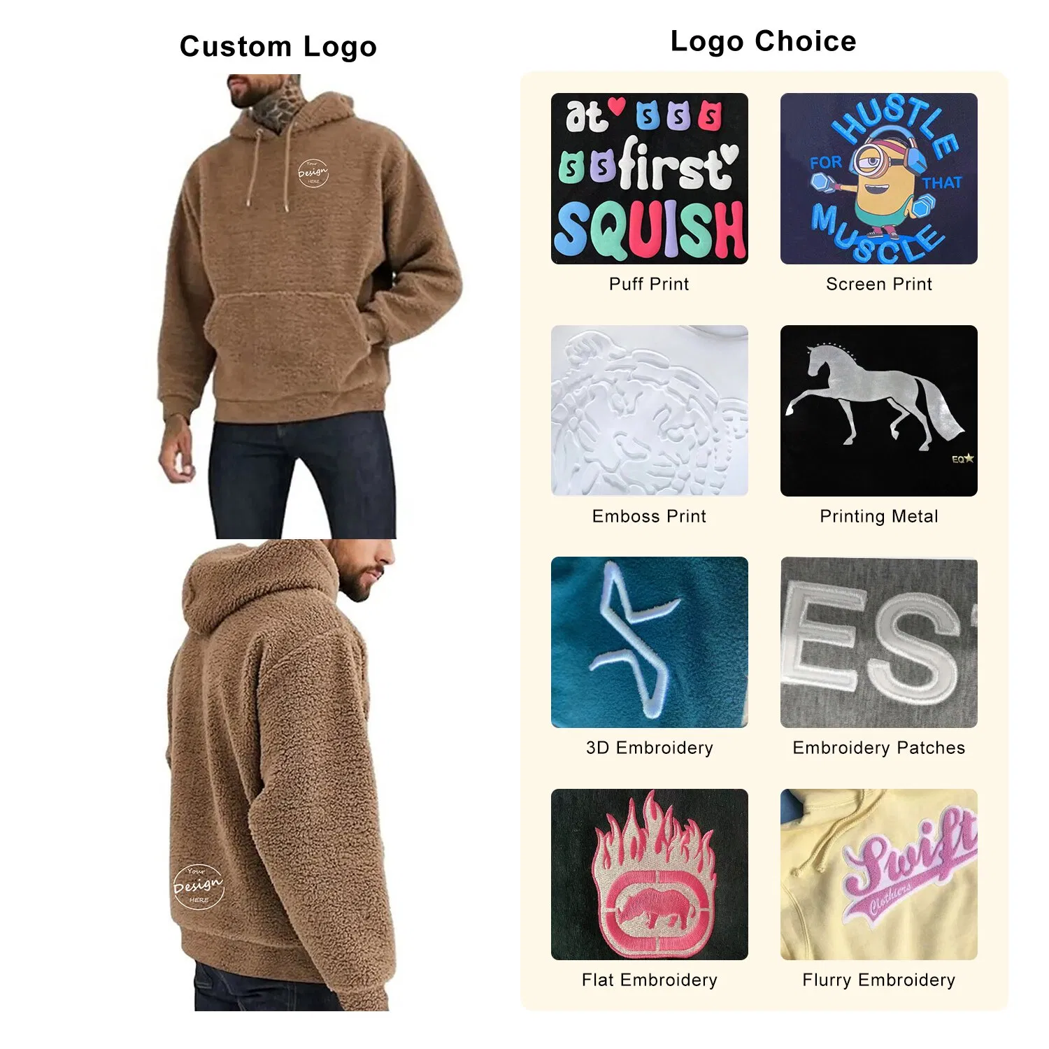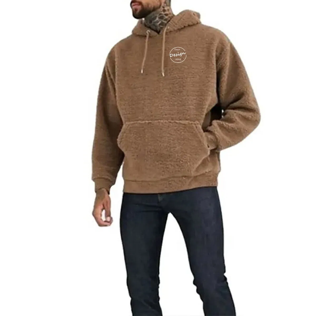 Luxury Streetwear 100%Polyester Training Warm Solid Color Wholesale Custom Casual Men Pullover Sherpa Fleece Hoodie
