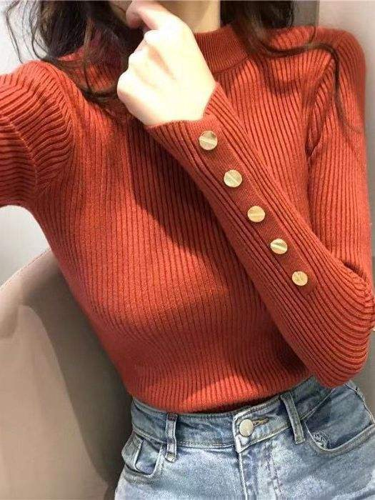 Autumn/Winter Knit Sweater Half Turtleneck Foreign Style Long Pullover Sleeve Sweater