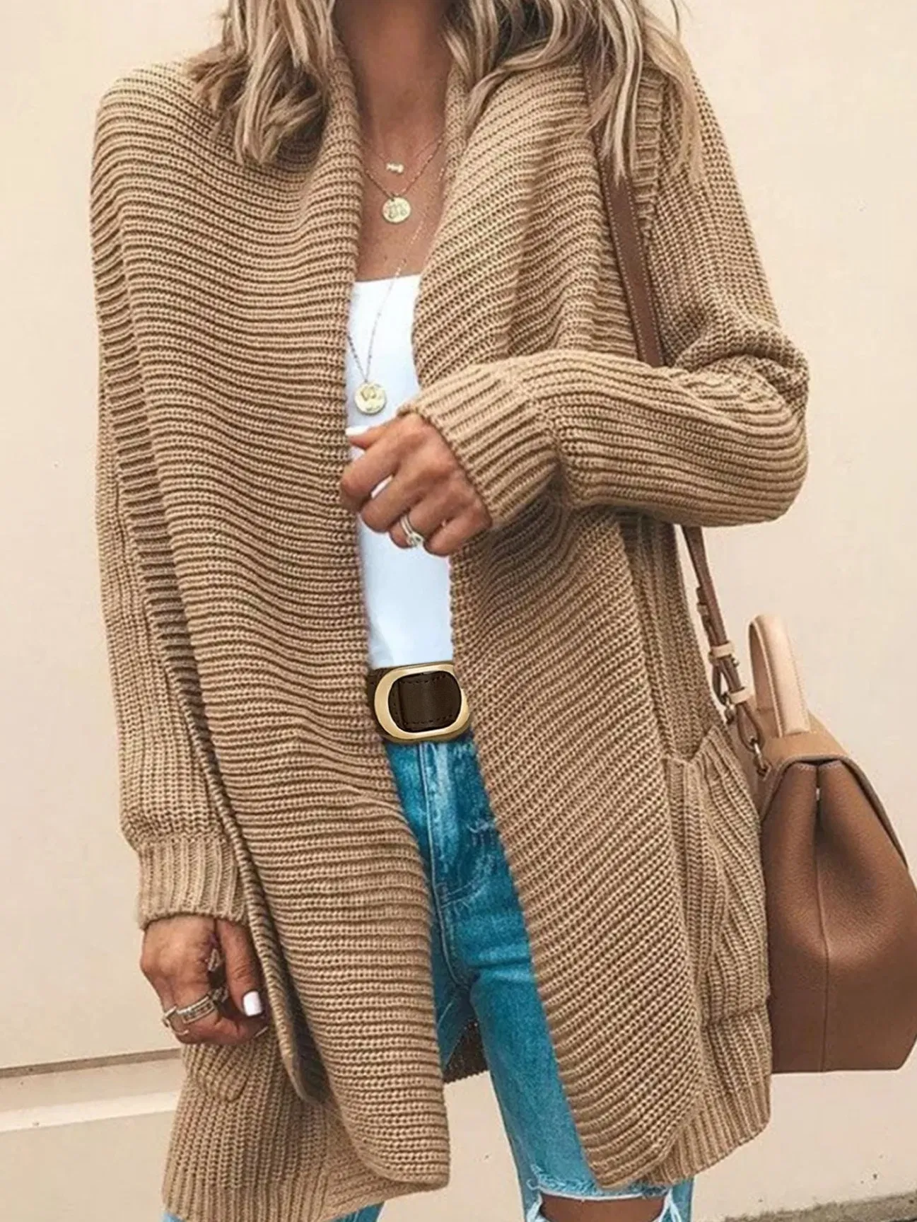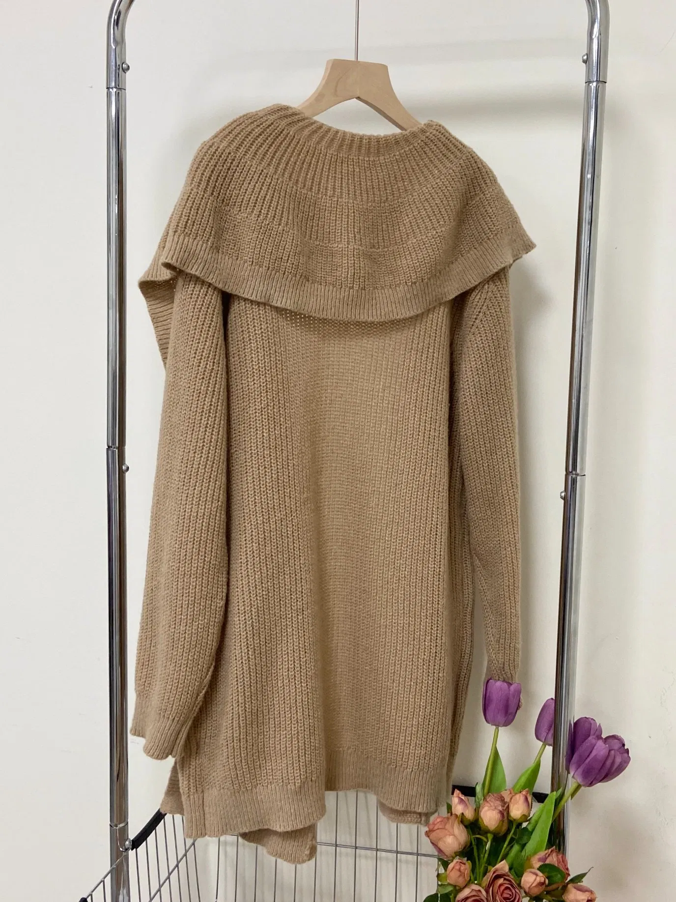 Women′s Long Sleeved Cardigan for Autumn and Winter, Comfortable and Fluffy, Solid Color, Casual Style, Big Collar Sweater