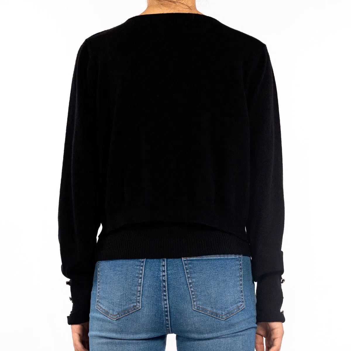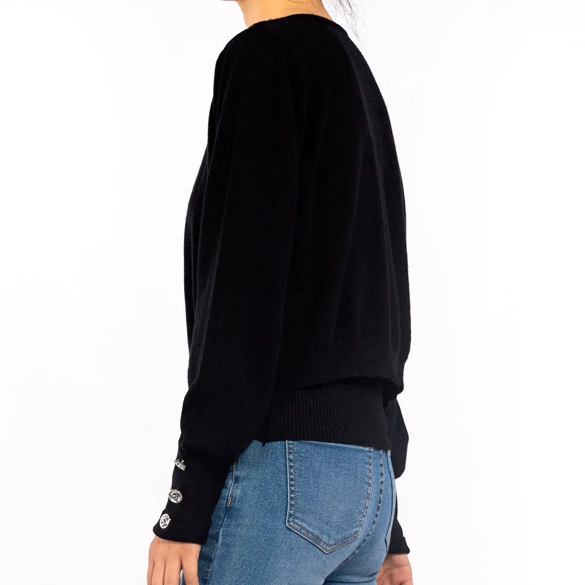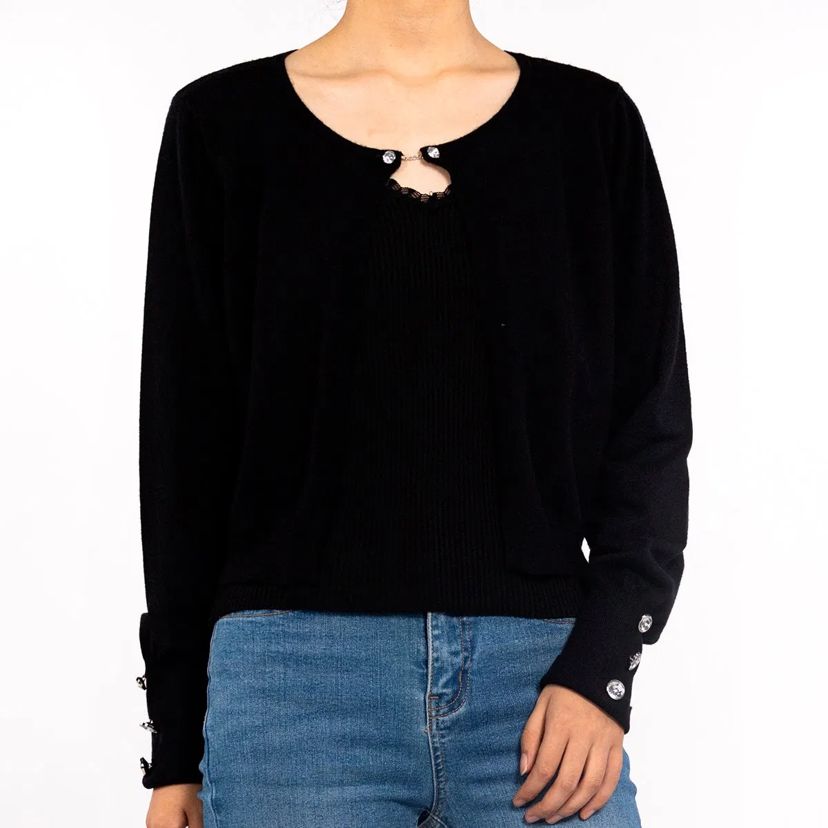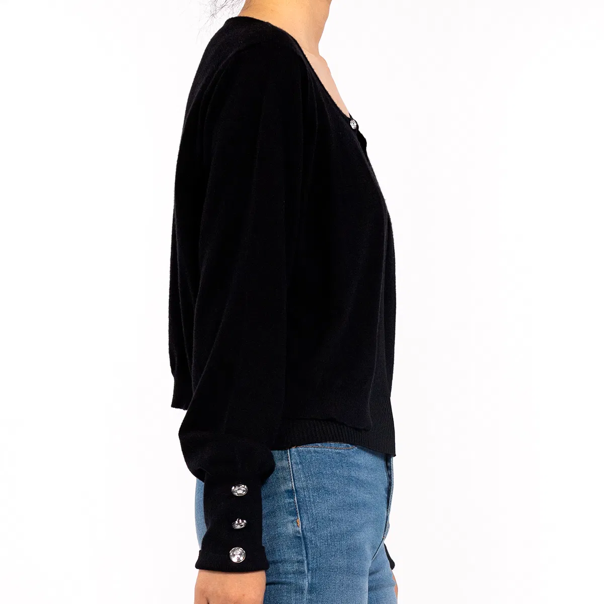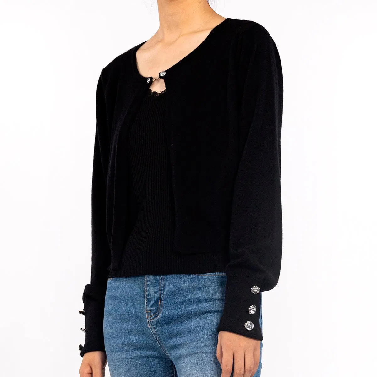 Black Crew Neck Long Sleeve Knit Lightweight Crop Sweater Cardigan Women