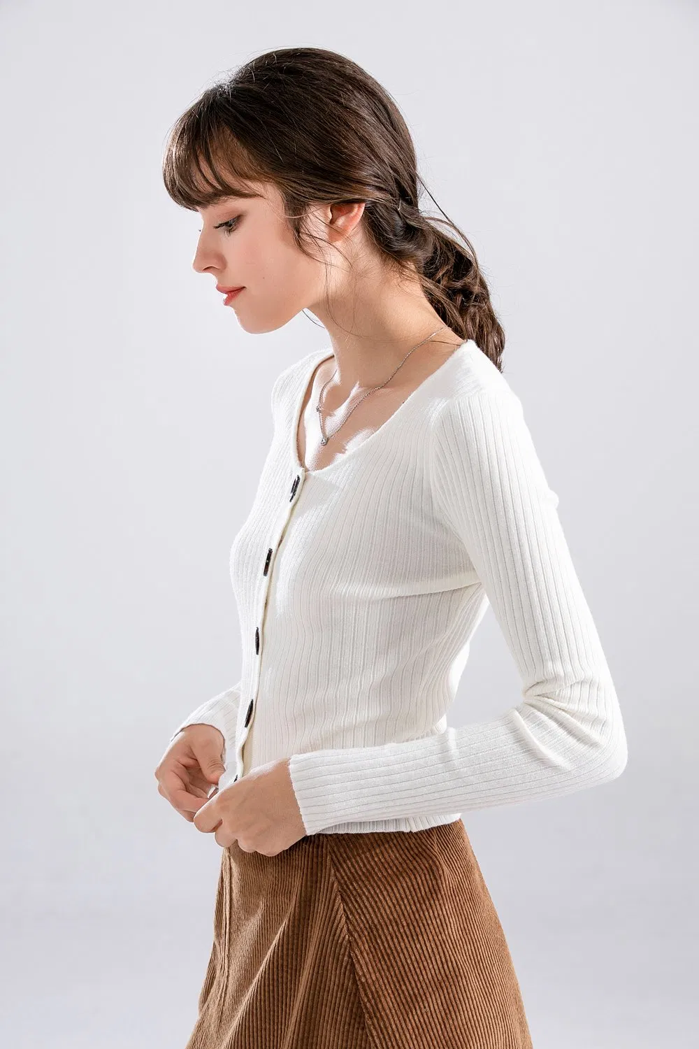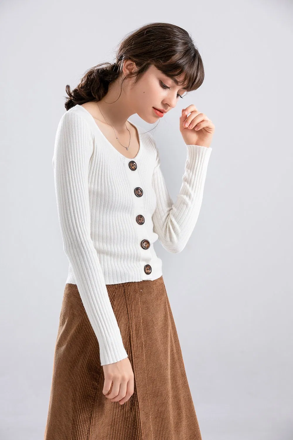 Hot Sale New Fashion High Quality Scoop Neck Ivory Cardigan Button up Fit Autumn Sweater