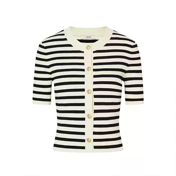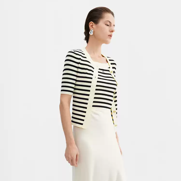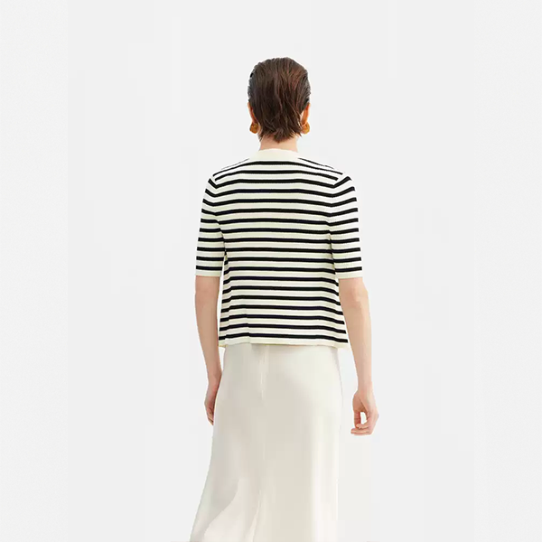 Women′s Ice Silk Striped Sweater - Loose Fit MID-Sleeve Cardigan