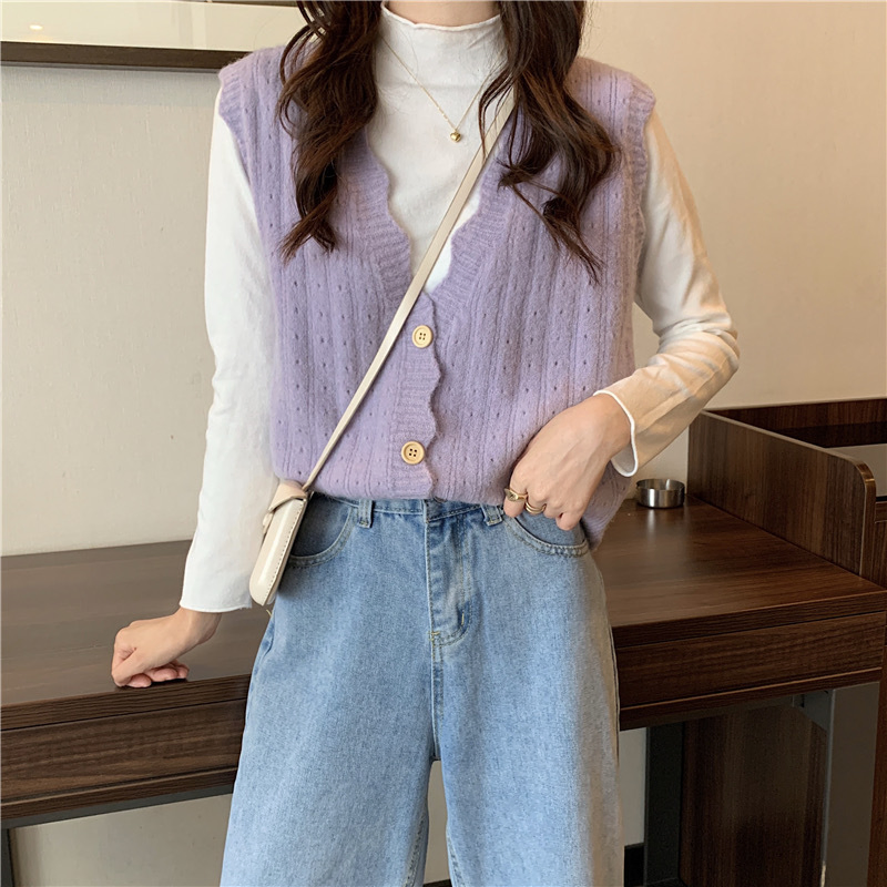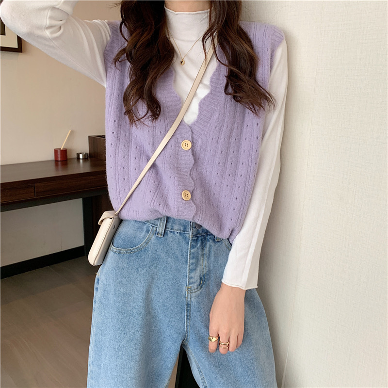 Hollow Knitted Vest Cardigan Women′s Autumn and Winter New V-Neck Vest Sweater Shawl