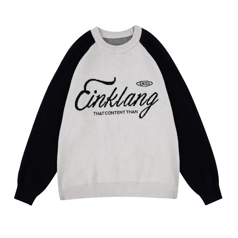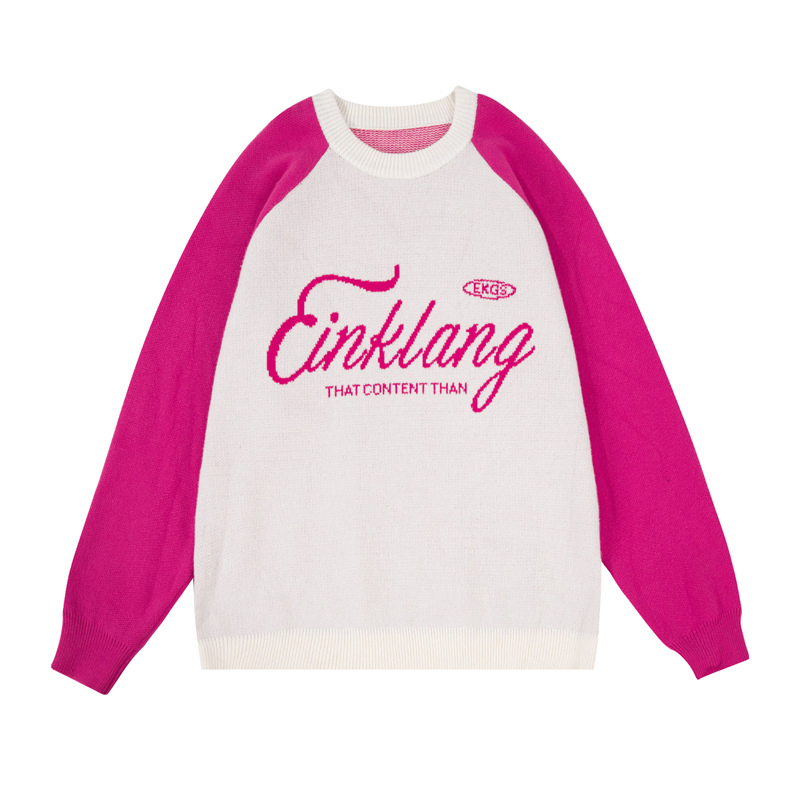 Crew Neck Raglan Sleeves Cotton Kintted Sweater