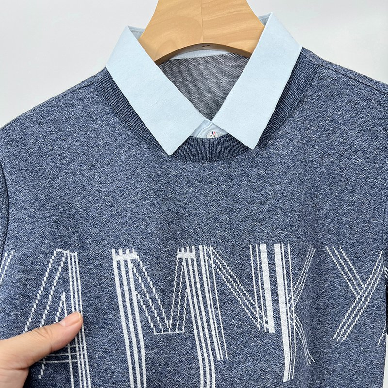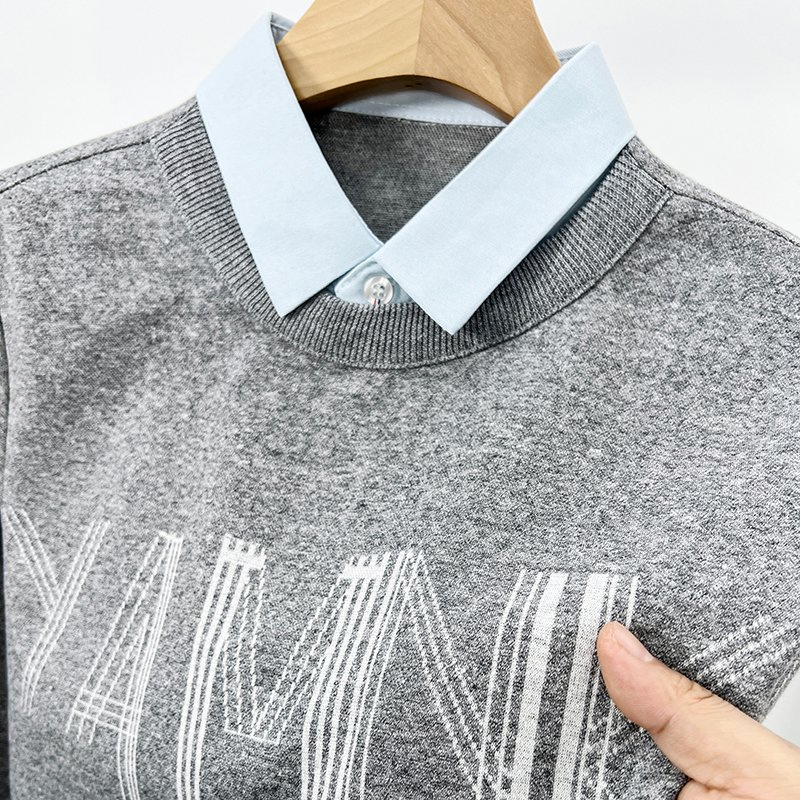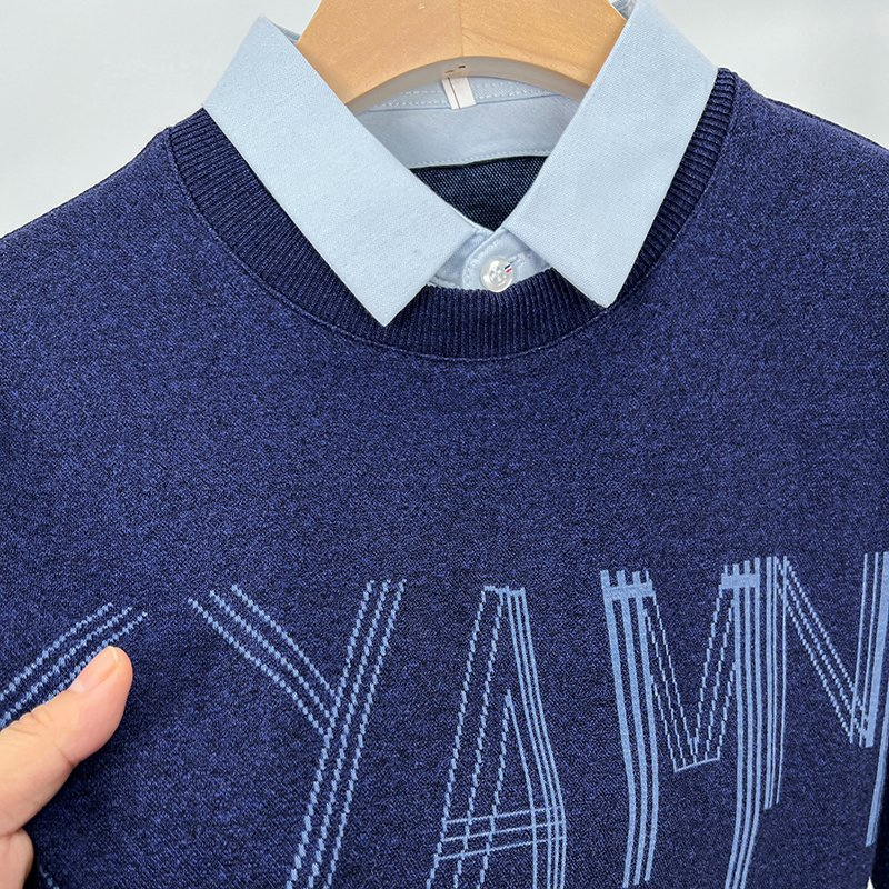 Men′s Lightweight Cotton Faux Two-Piece Sweater - Casual Thin Knitwear for Spring/Fall, Modern Layered Look