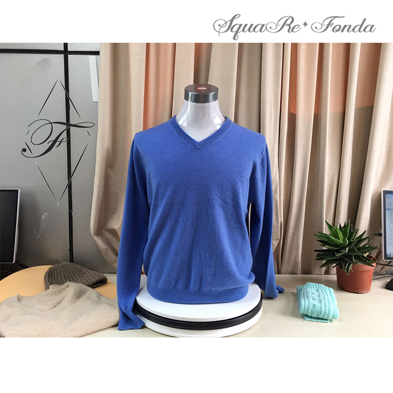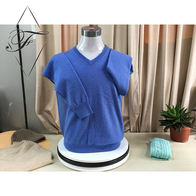 Factory 100% Cashmere Knitting Men′s V-Neck Long Sleeve Pullover Sweater.