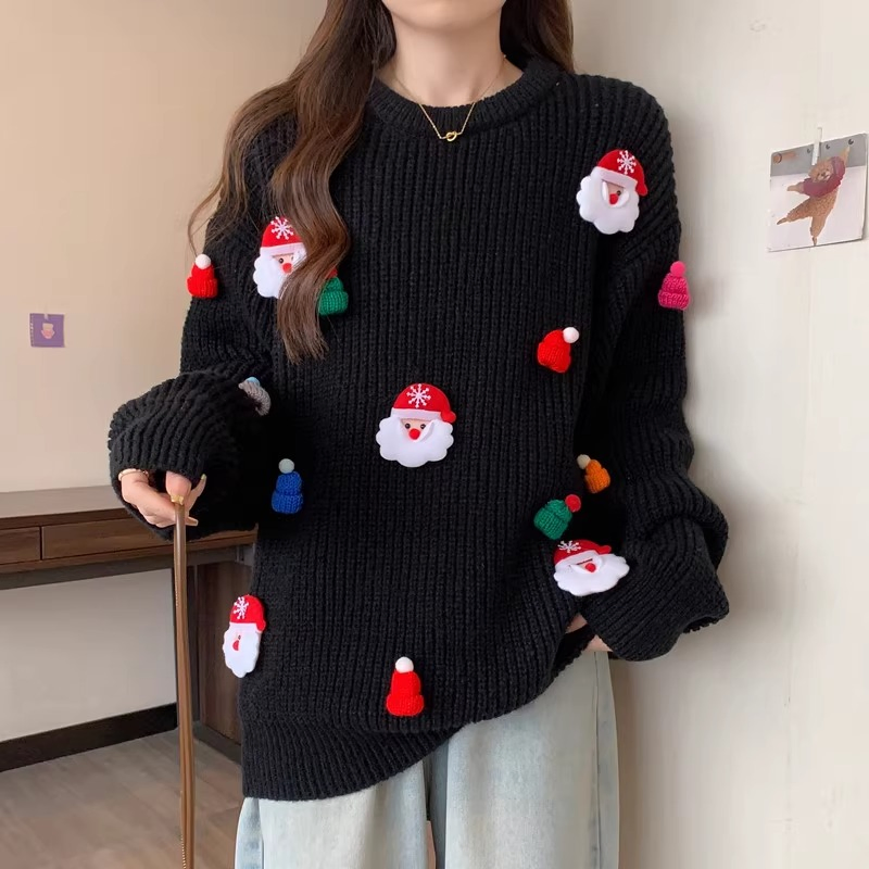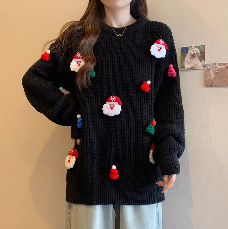 O-Neck Pullover Ugly Elk Snowflake Merry Christmas Ladies Girls Loose Clothes Knitted Tops Women Christmas Sweaters