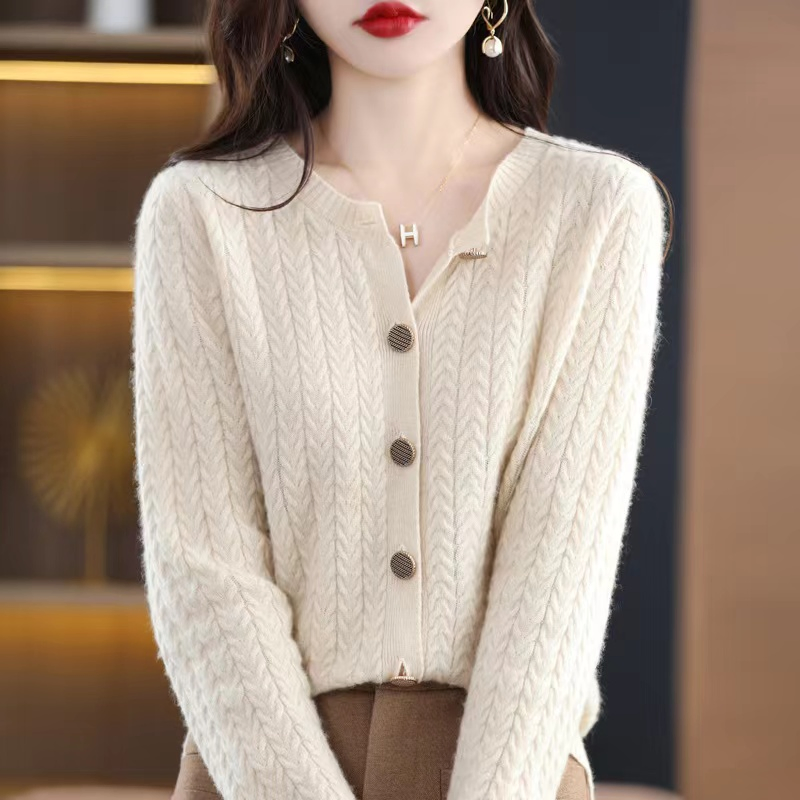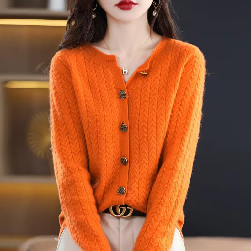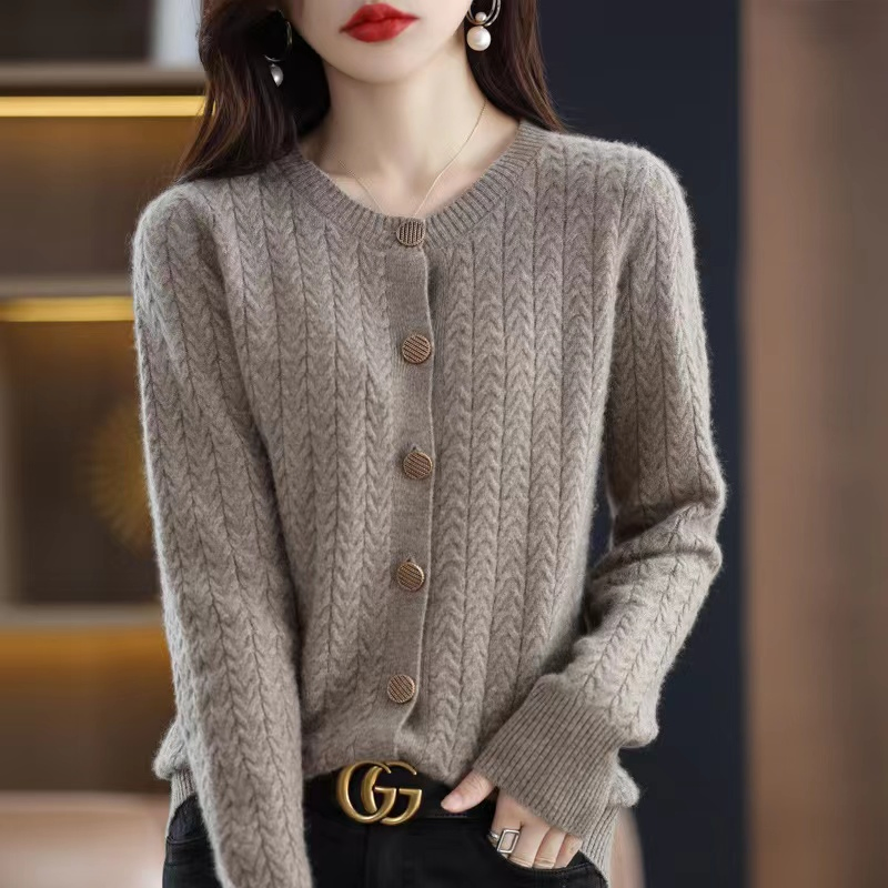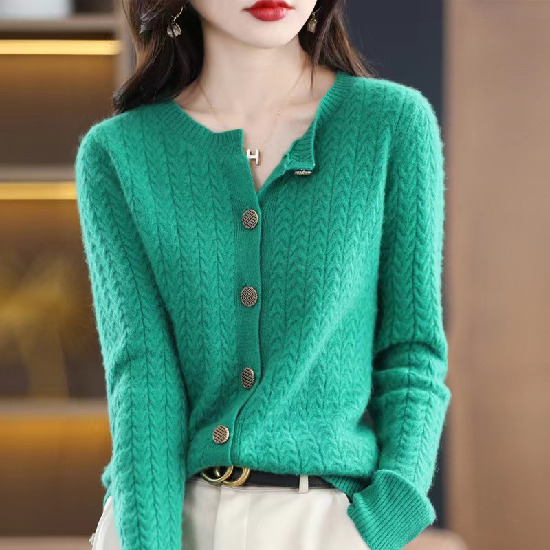 Fashion Casual Solid Long Sleeve Sweater Street Knitted Women′s Cardigan