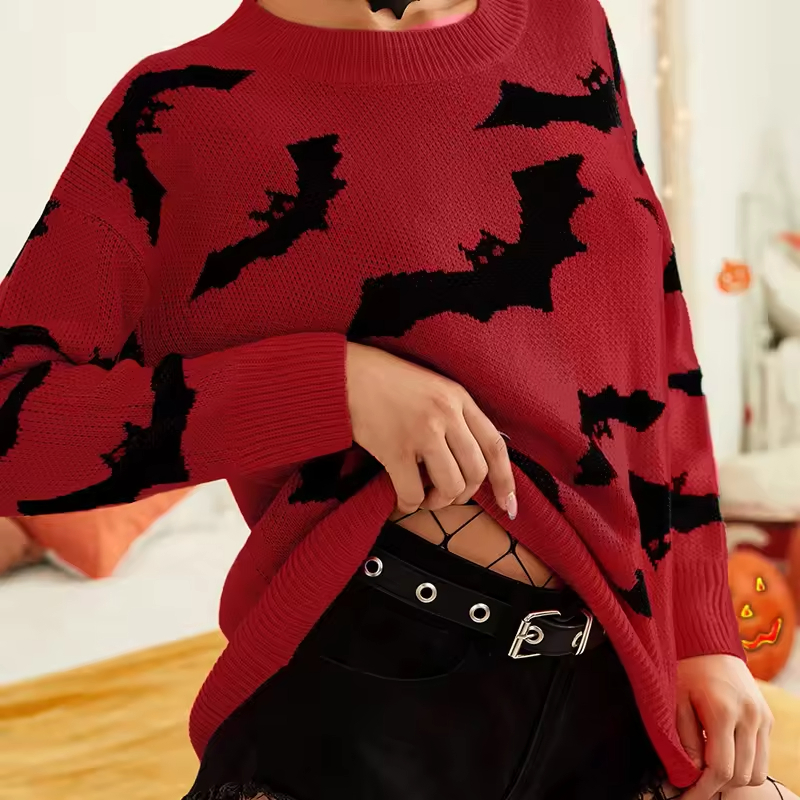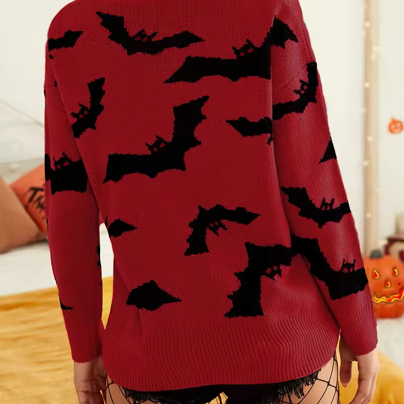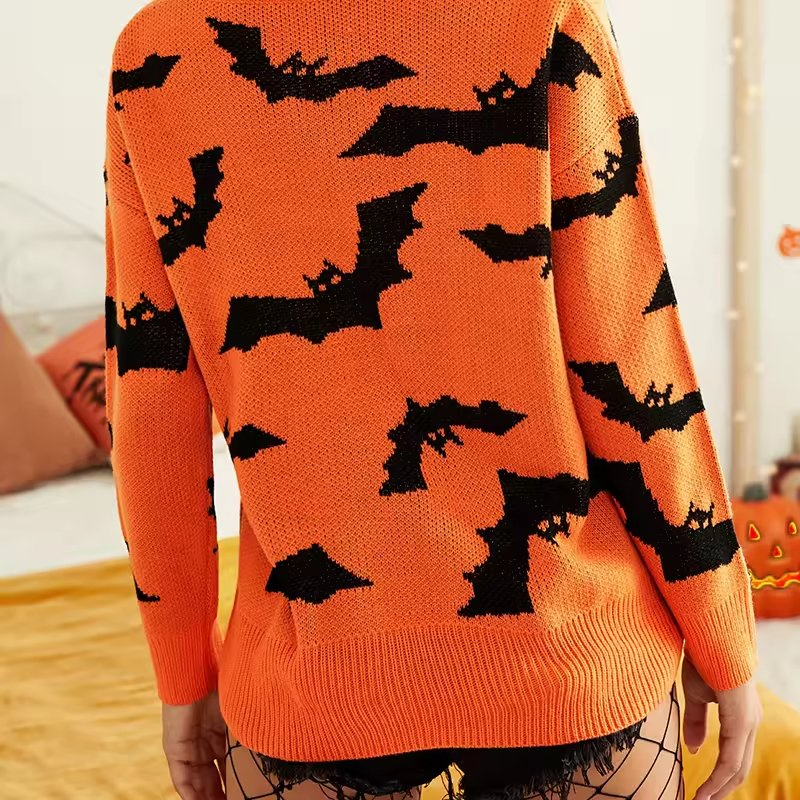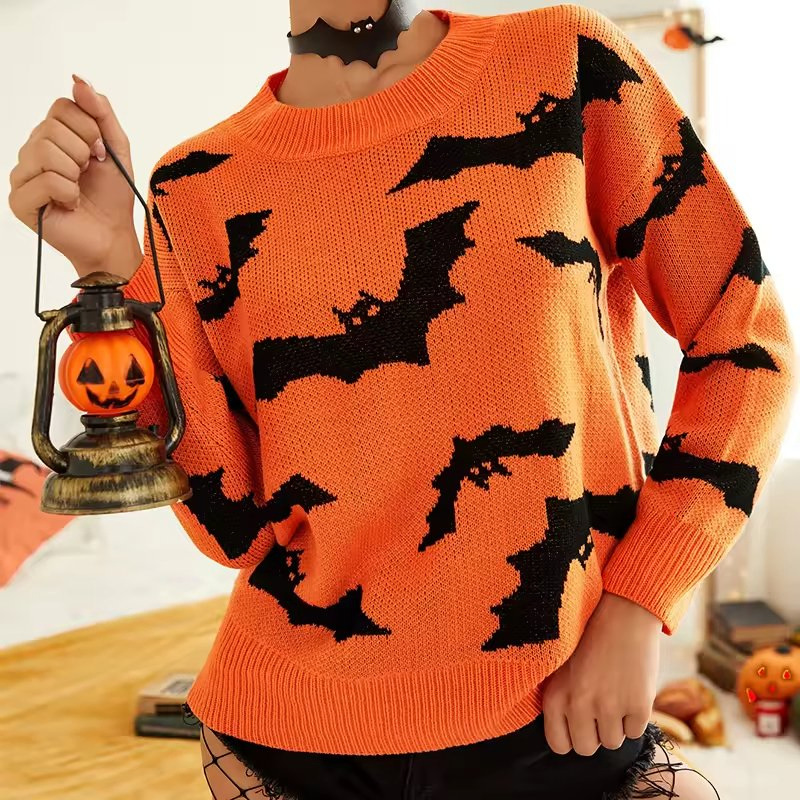 Women′s Funny Halloween Print Long-Sleeved Sweatshirt Casual Blouse Pullover Sweater
