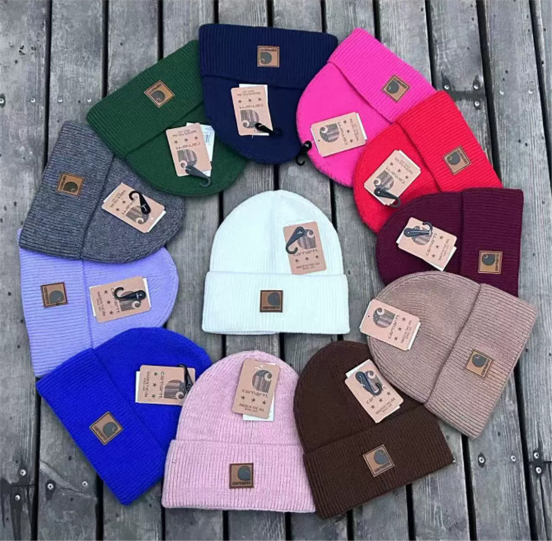 New Winter Warm Unisex Winter Hat Cap Leather Patch Women Knit Cap Hat Mens Beanie