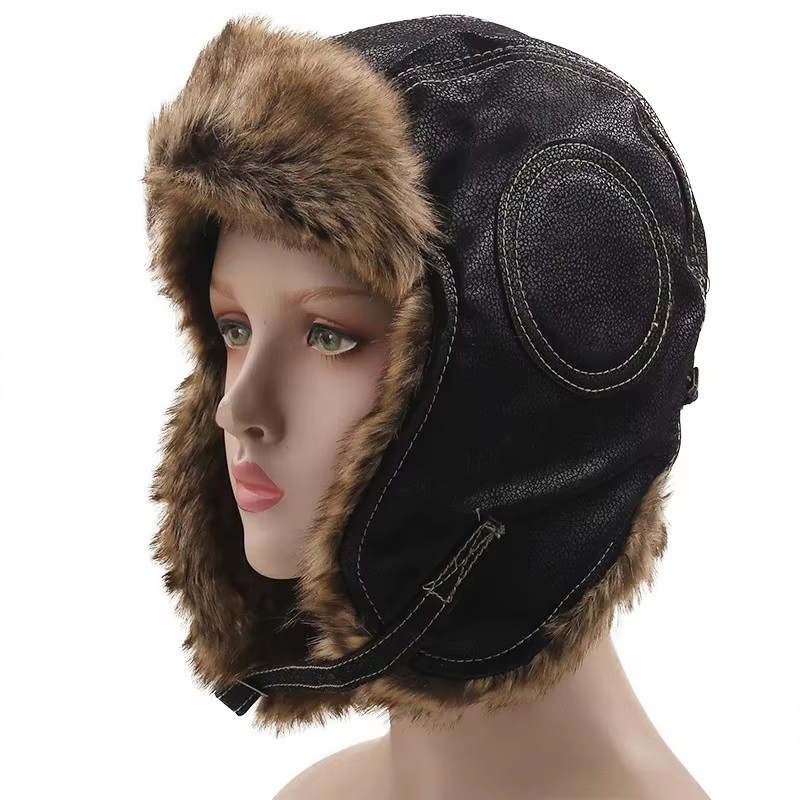 Russian Cap PU Leather Warm Arctic Hat Ski Ear Protection Winter Caps