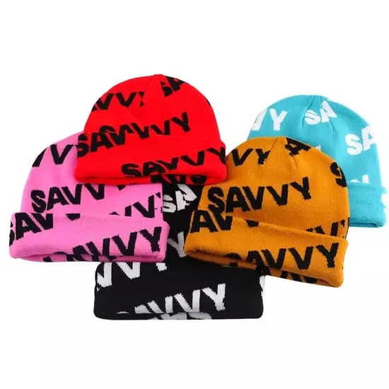 Custom Men Women Sports Bonnet Hat Christmas Jacquard Winter Warm Cap Acrylic Plain Embroidery Wool Ski Skulled Cuffed All Over Printed Knitted POM Beanie Hat