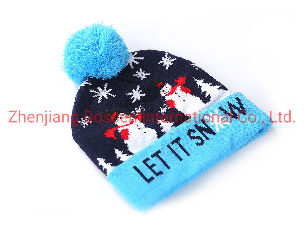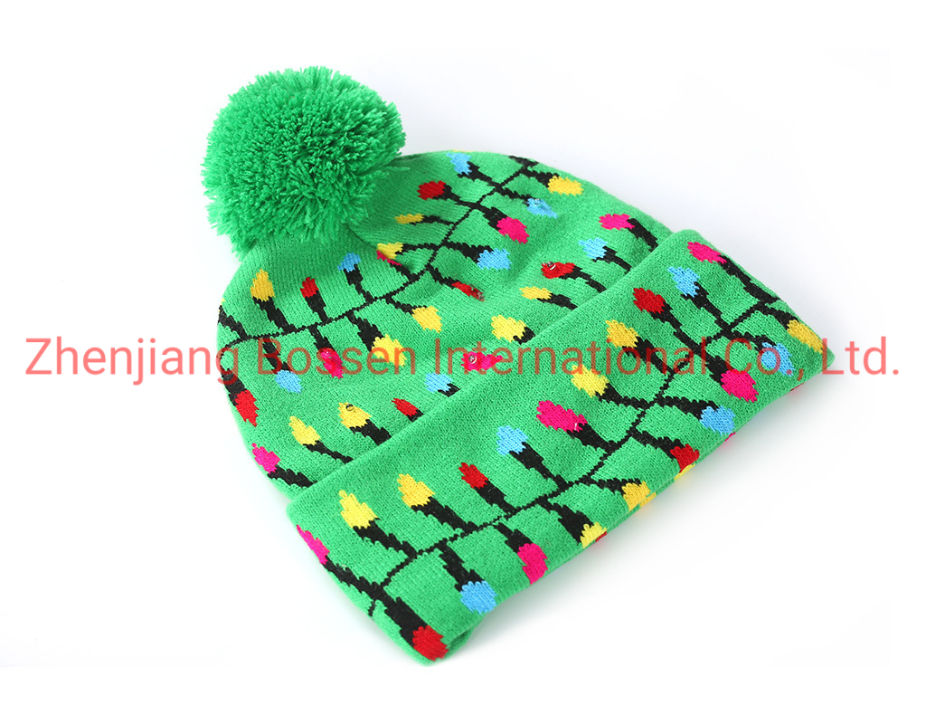 OEM Customized Jacquard Christmas LED Winter Acrylic Beanie Hat