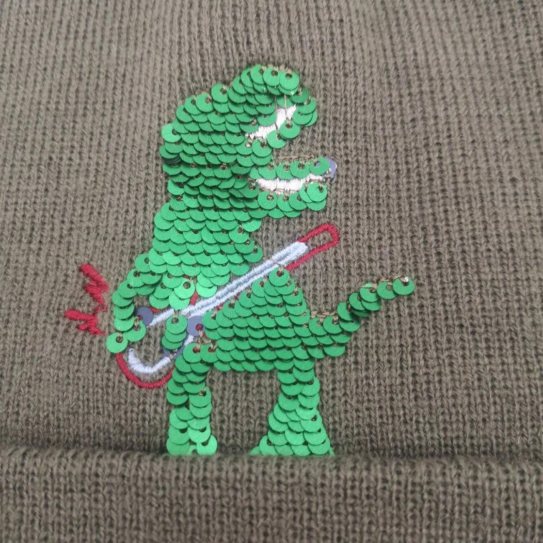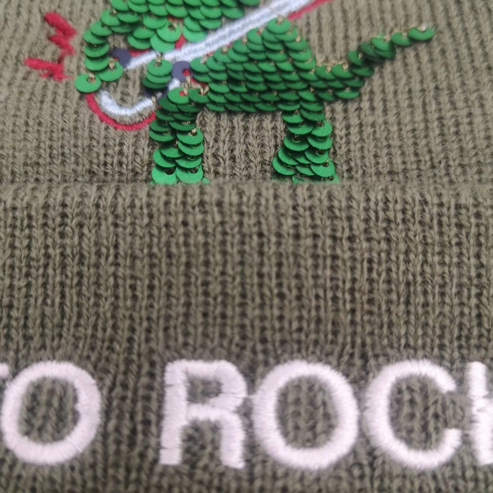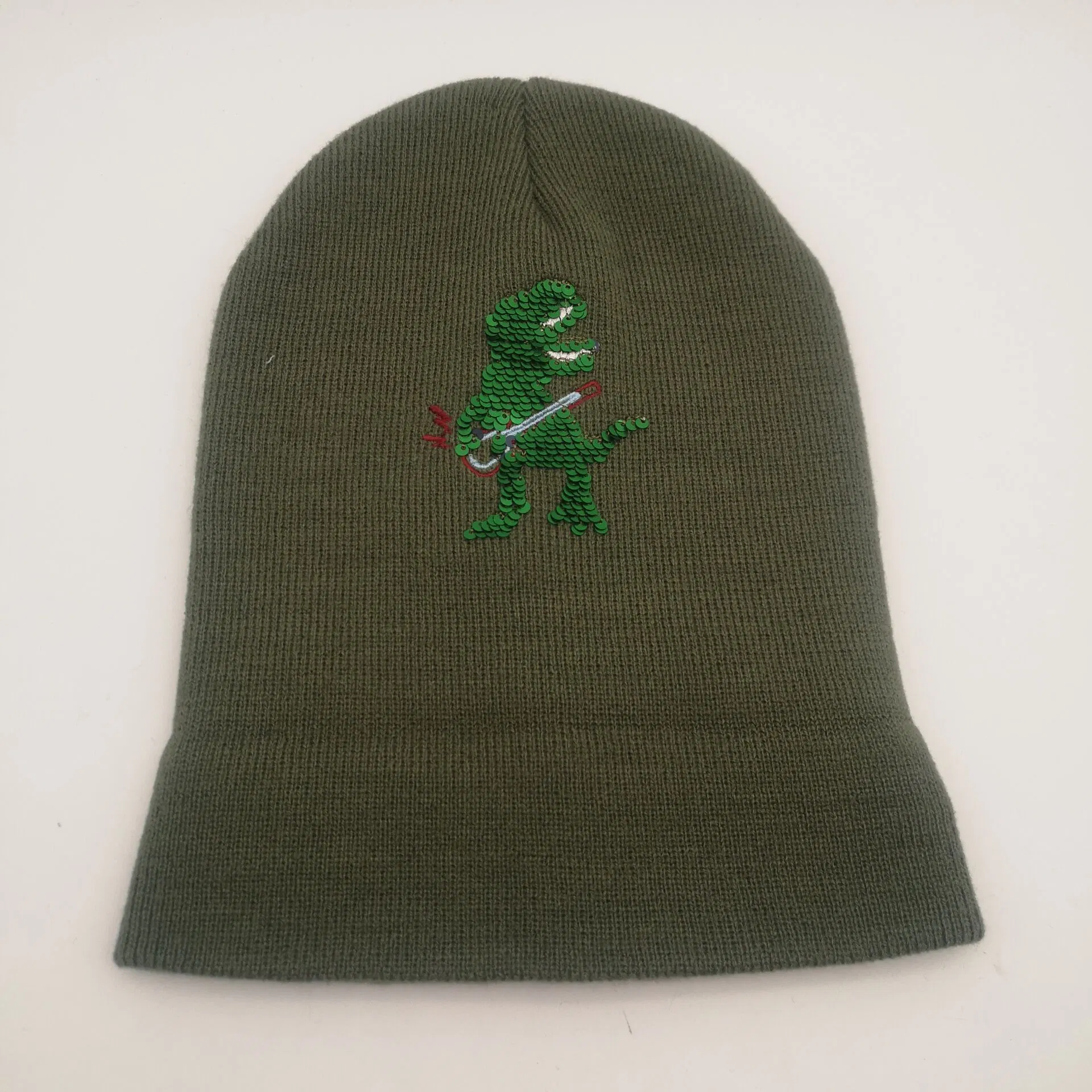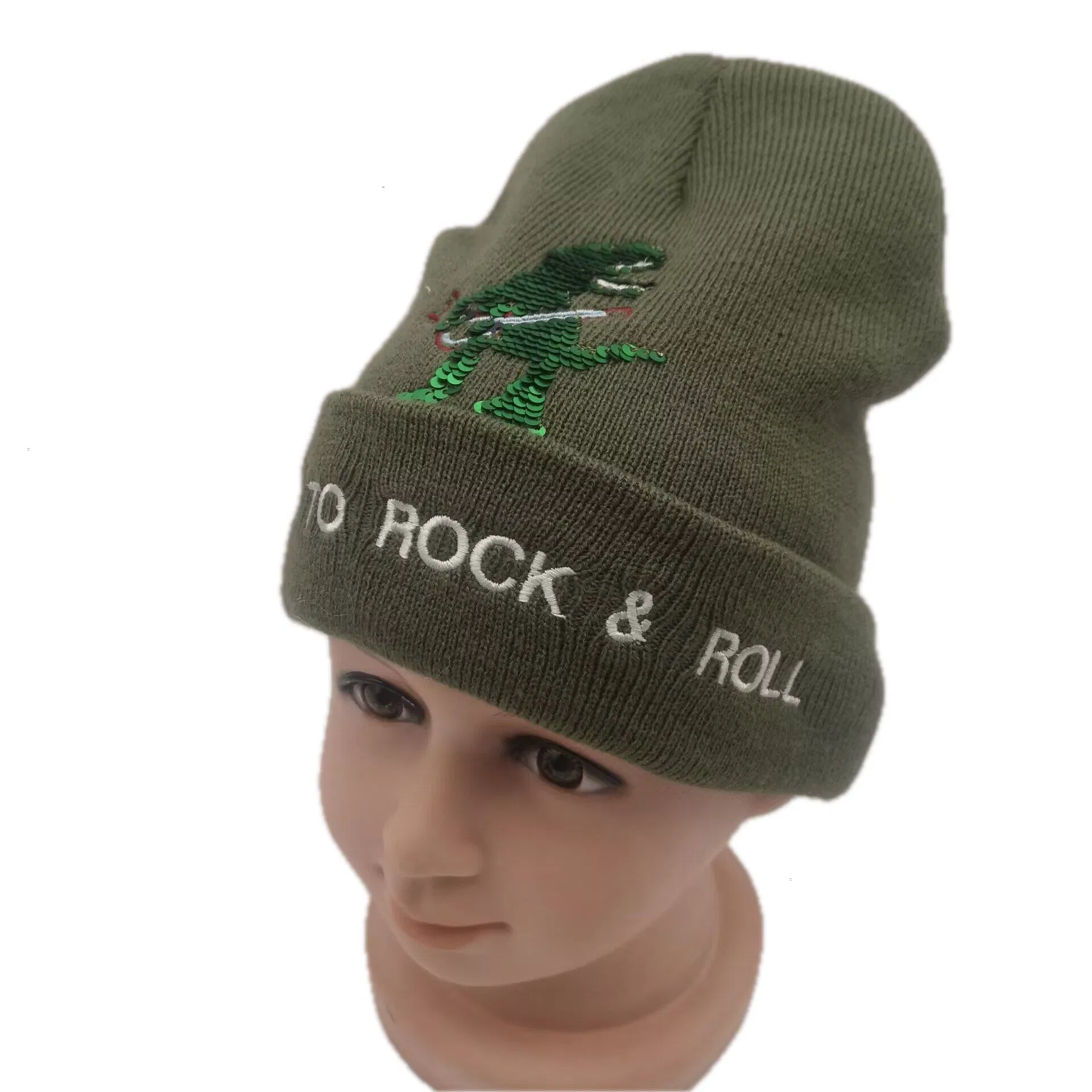 Boys Cap Winter Outdoor Double Layer Embroidery Plus Dinosaur Sequins Knitted Hat