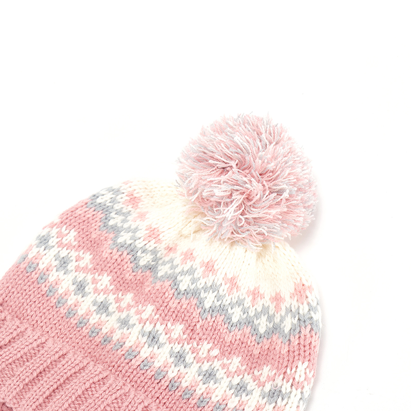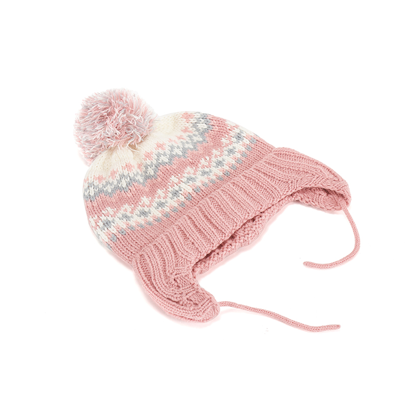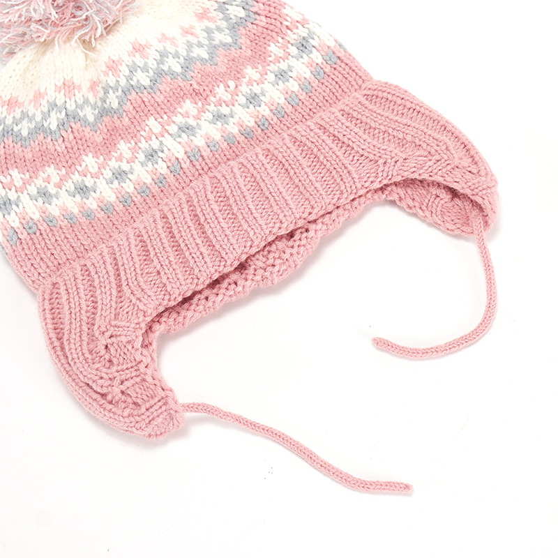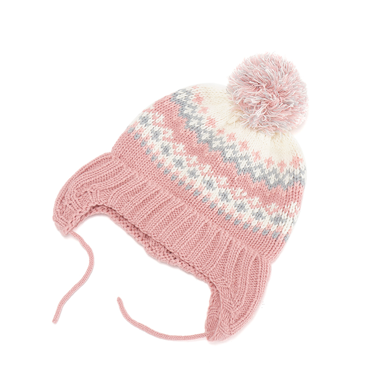 Custom Autumn Winter High Quality Acrylic Pink Knitted Hat Women Knitted Beanie Hat Winter Ear Hat