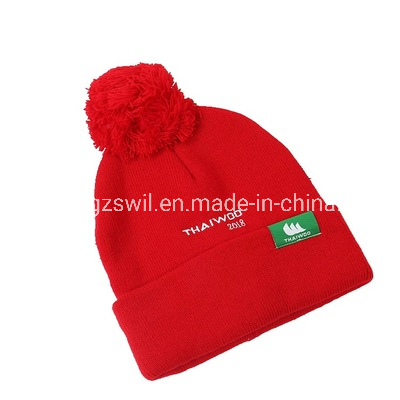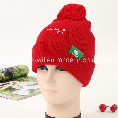 Fashion Exhibition Decoration Acrylic Fabric Promotion Knitted Hats with Ball