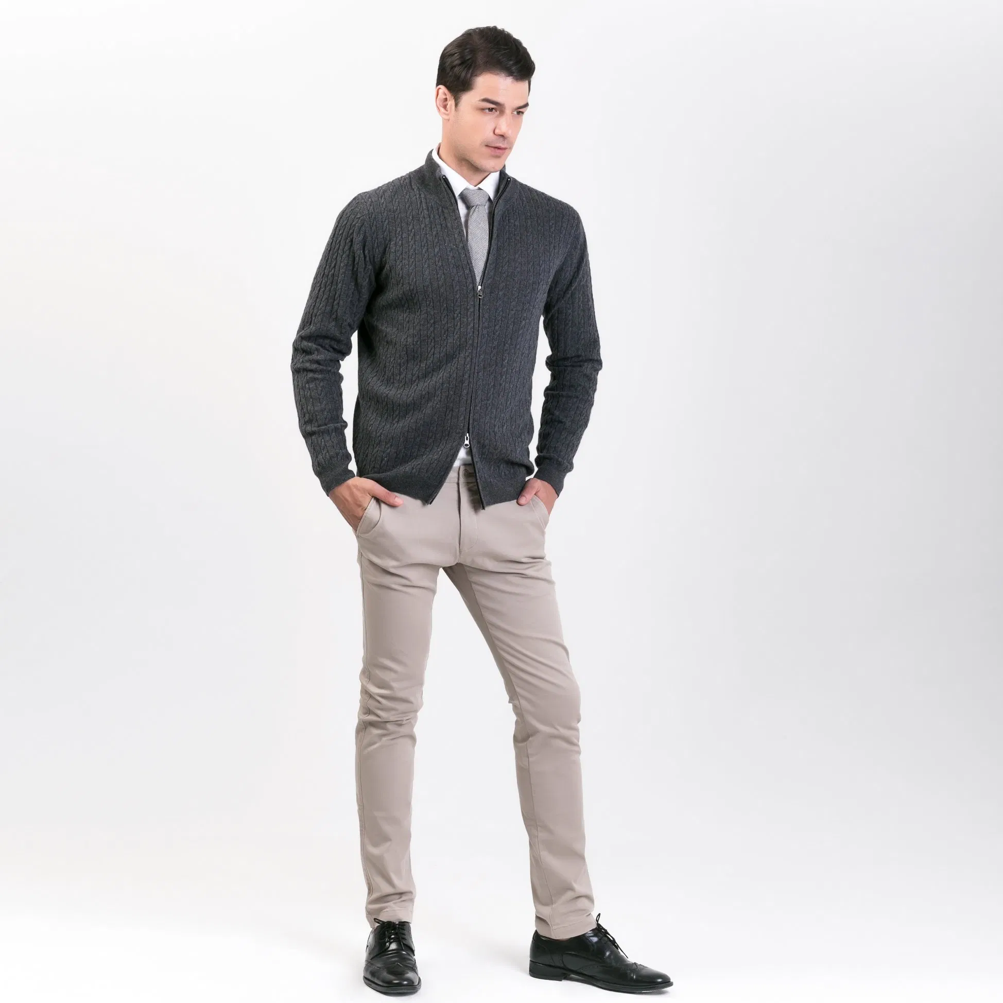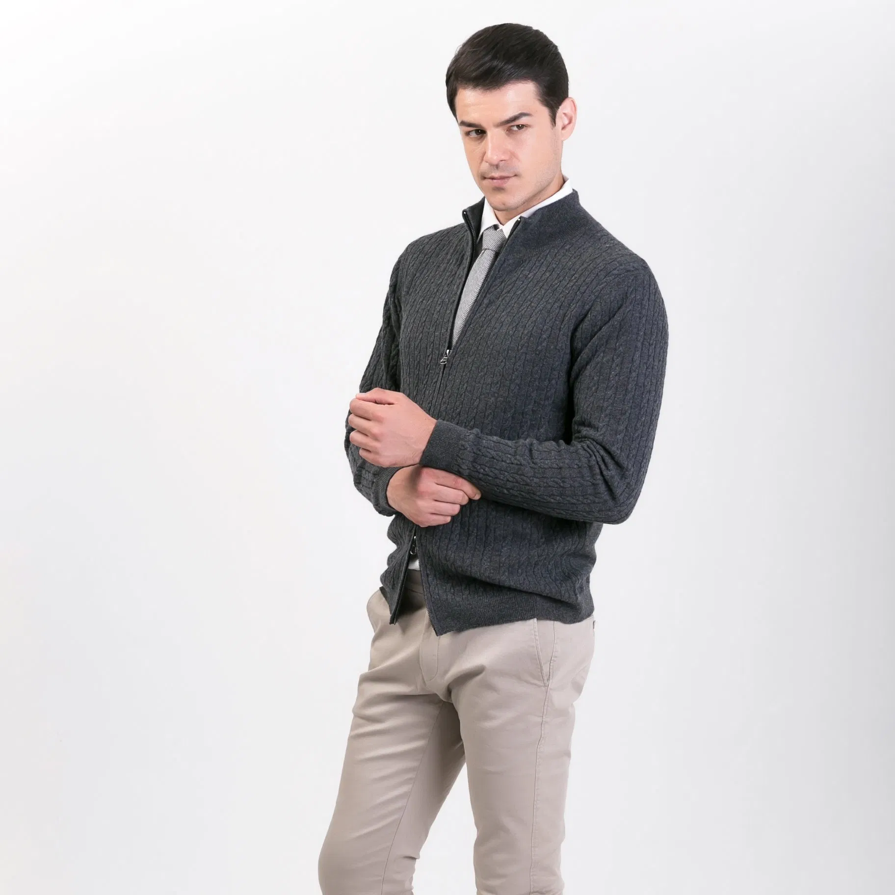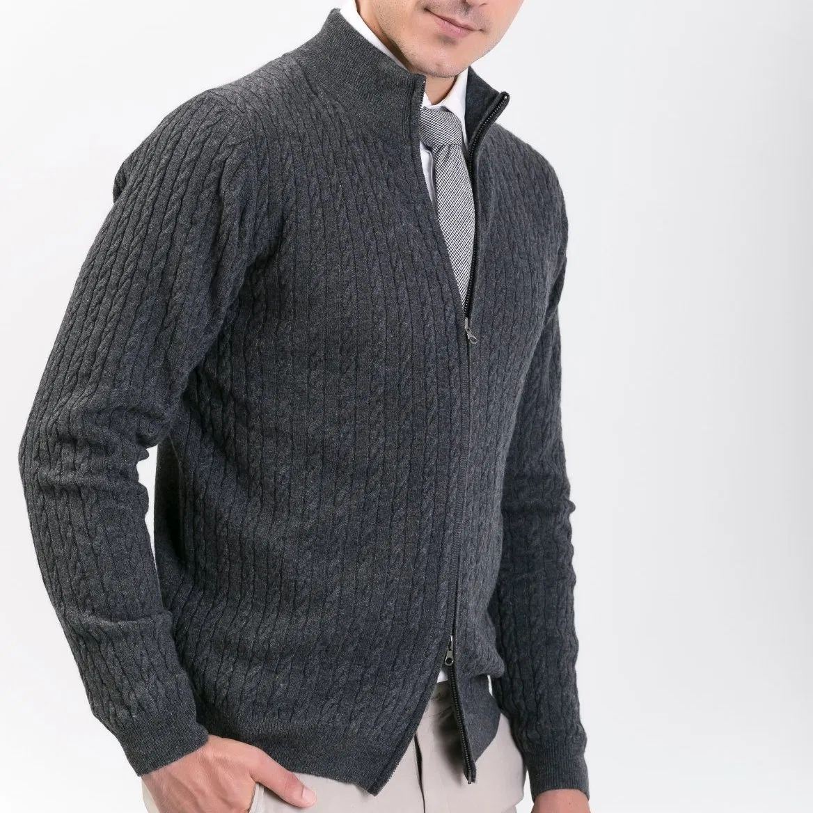 Men′ S Fashion Wool Cashmere Double Zip up Cardigan Sweater
