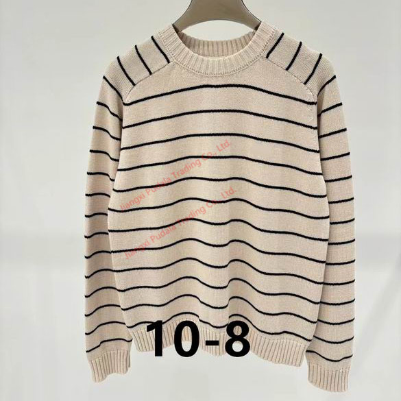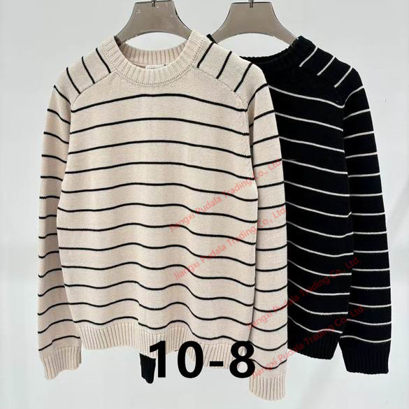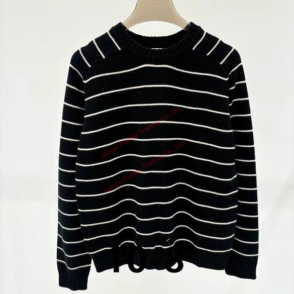 Autumn and Winter New Fashion Women′s Round Neck Loose Casual Knitting Warm Pullover Striped Knit Top Sweater