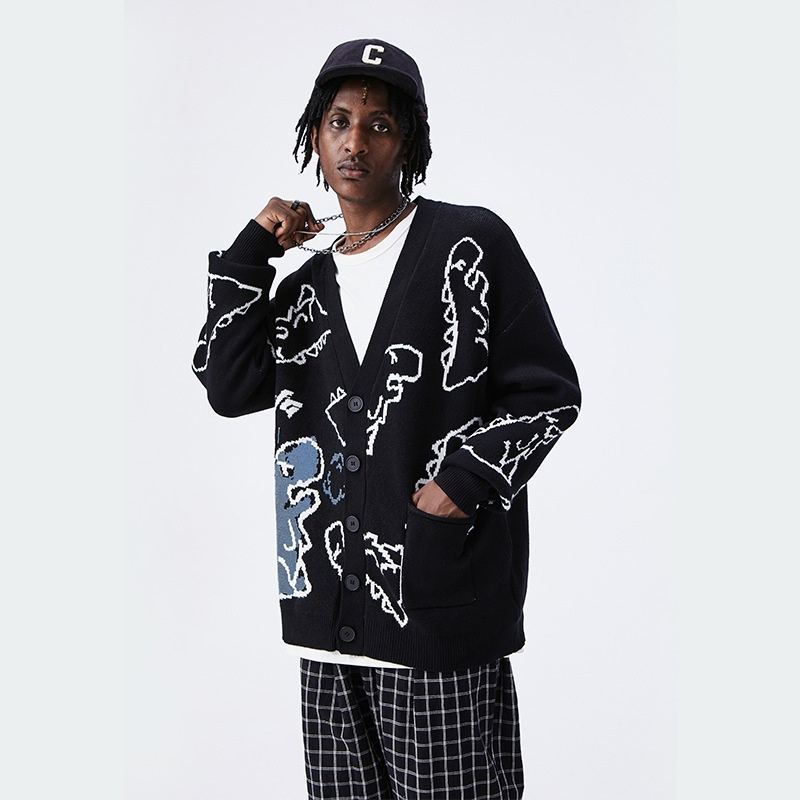 Custom OEM & ODM Boy Sweater Long Sleeve Dragon Knit Jacquard Pattern Knitwear Men′s Clothes Knitted Cardigan Sweater