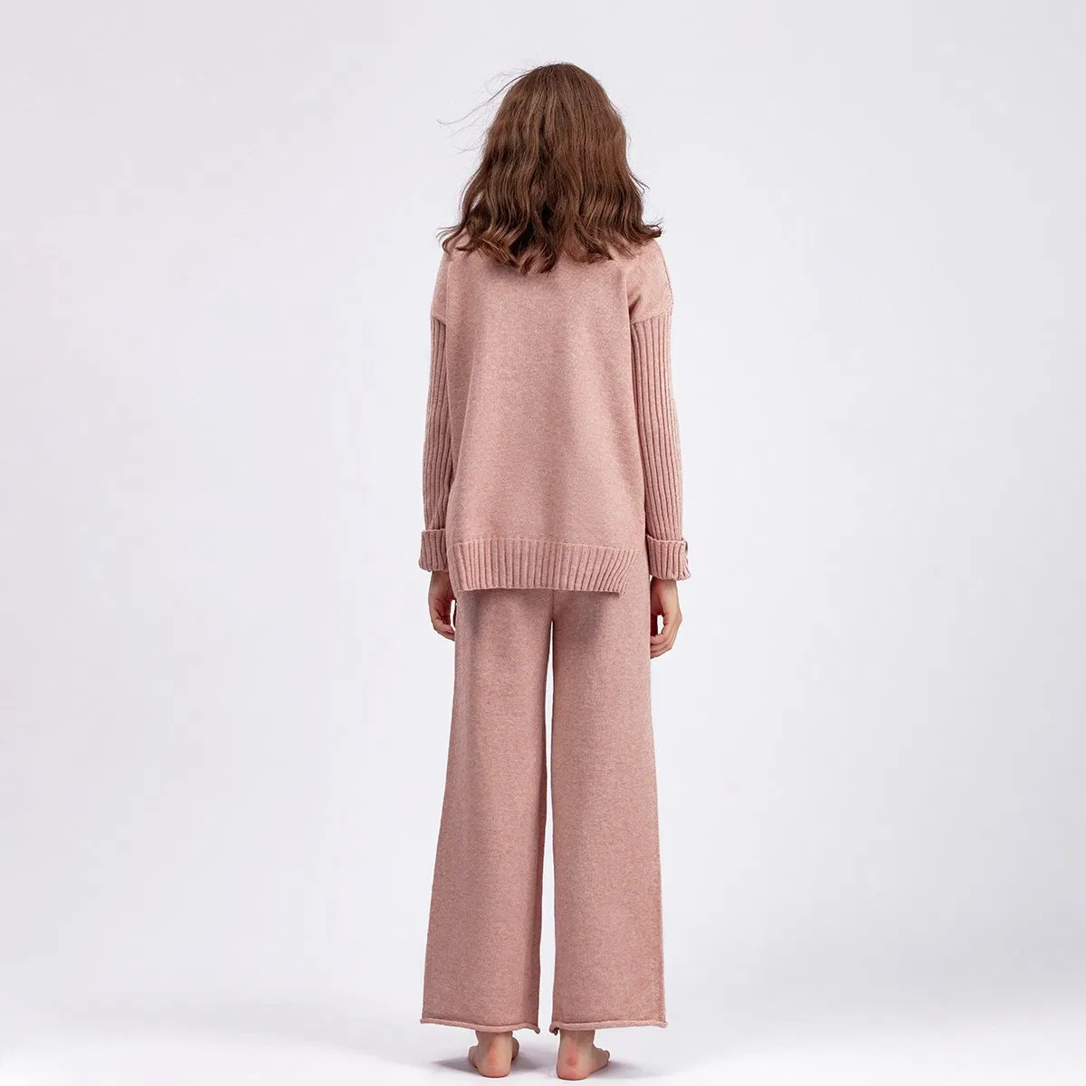 Модный однотонный комплект свободного покроя с высоким воротом, повседневный женский свитер для пригородных поездок